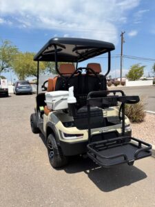 Includes New Lithium 48V 150Ah, New 1/4″ Tinted Fold Down Windshield, New Mirror, New 10-Inch Touch Screen Display, New LED Street Legal Light Kit with Turn Signals, New Upholstery, New Body & Top, New 10″ Mag Wheels, New Tire 205x50x10, Hydraulic Braking, Front Trunk, New State of Charge Meter, New Voltage Reducer, Speed 20mph, AC Motor, Onboard Lithium charger, and Title.